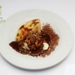 Sorvete de creme, Calda de chocolate, Castanha de caju e Raspas de chocolate.